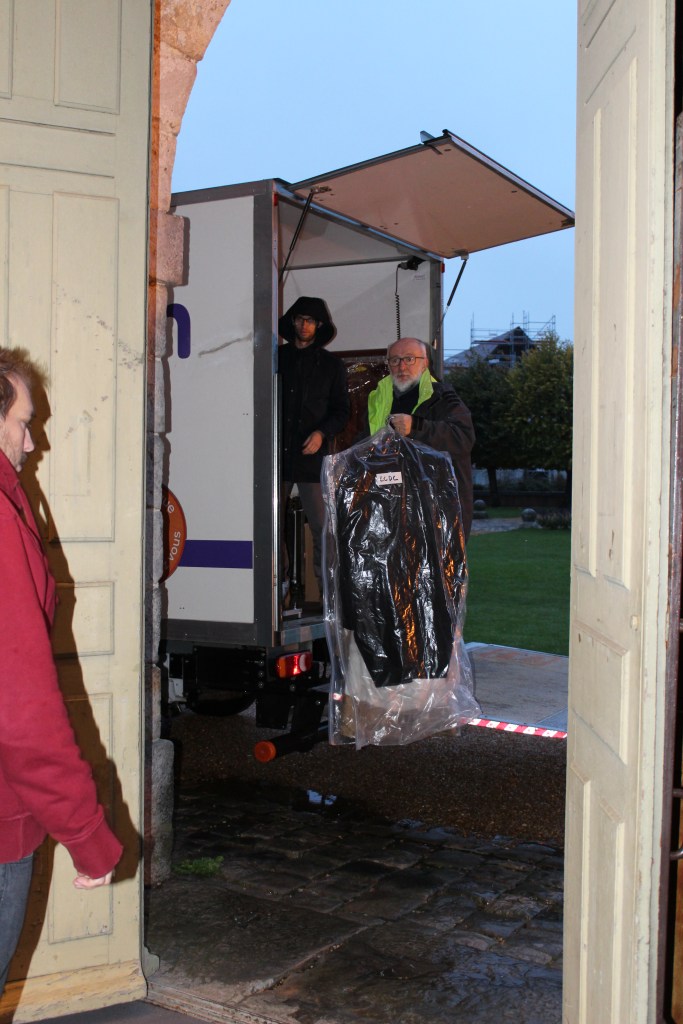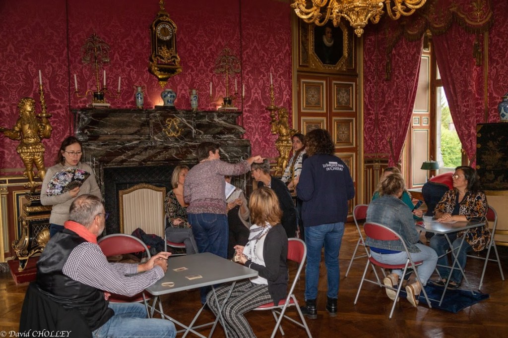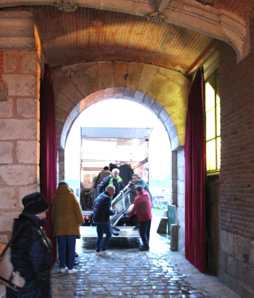Les costumes arrivent, les décors sont déchargés et commencent à être installés dans les salons, les petites fourmis s’activent. Les pièces du château ne portent plus les noms qui les désignent pour la visite mais leur nom de scène : il y a « Scarron », « le salon de jeu », « la mort du roi »….Tout un monde bien à part. Lorsque l’on est spectateur, on a l’impression que tout roule comme par enchantement mais les volontaires vous préparent ce spectacle depuis de longs mois ….