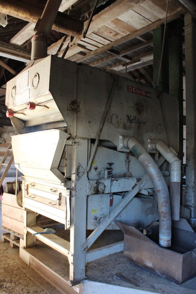 La récolte de céréales va être acheminée via une visse sans fin jusqu’au nettoyeur, elle va ensuite passer dans l’Épointeuse.