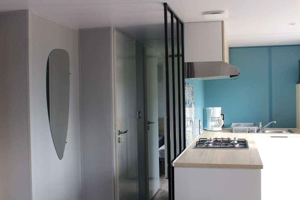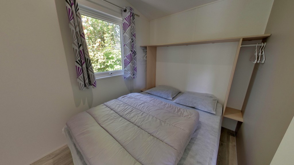 Ce sont des chalets en bois au confort basique : 2 chambres, un toilette et une cuisine. Le bloc sanitaire est partagé avec les autres campeurs et se trouve à quelques mètres. C’est une prestation que nous destinons aux cyclo et moto cyclistes, pour leur offrir une prestation confortable à un prix modéré.