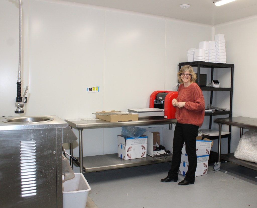 En ce mardi matin automnal, nous arrivons à Aunay Sous Auneau, dans l’entrepôt et aussi boutique des Macarondises. Nous sommes accueillis chaleureusement par Stéphanie Froger et nous débutons par la visite des lieux qui se composent en 3 parties.
