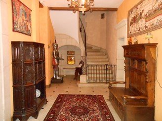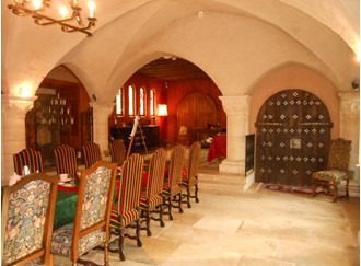 Sa grande salle à manger vous accueille dans son ambiance médiévale devant sa cheminée monumentale pour un petit déjeuner copieux et un moment de pure convivialité.