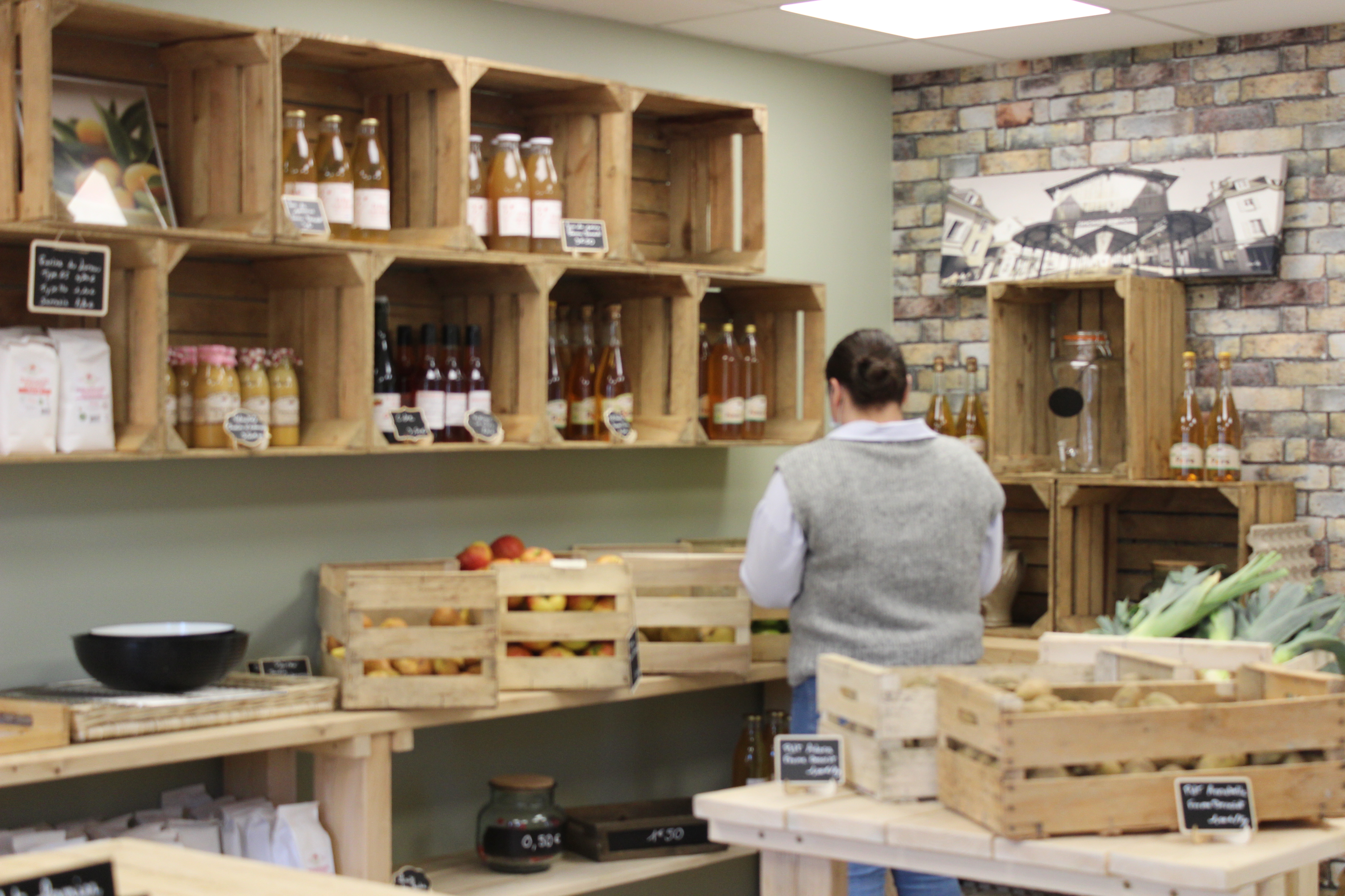 Cyrille et Céline « Avec l’épicerie on prône la localité, elle est vraiment dédiée aux producteurs locaux donc on parle de 99% des produits qui viennent de fermes locales. Des plats à emporter sont aussi disponibles à l’épicerie. On se positionne vraiment comme un commerce multiservice, avec le bureau de poste, le pain et les viennoiseries qui sont cuites sur place. Ça rend service à beaucoup de personnes qui sont très contentes de pouvoir venir chercher leur pain à pied. Les personnes peuvent aussi très bien venir prendre un café le matin ou venir boire un verre l’après-midi ou après le travail par exemple, puisqu’on dispose d’un espace bar-lounge. Et avec le restaurant on essaye de créer un cercle vertueux avec des produits frais et locaux ! »