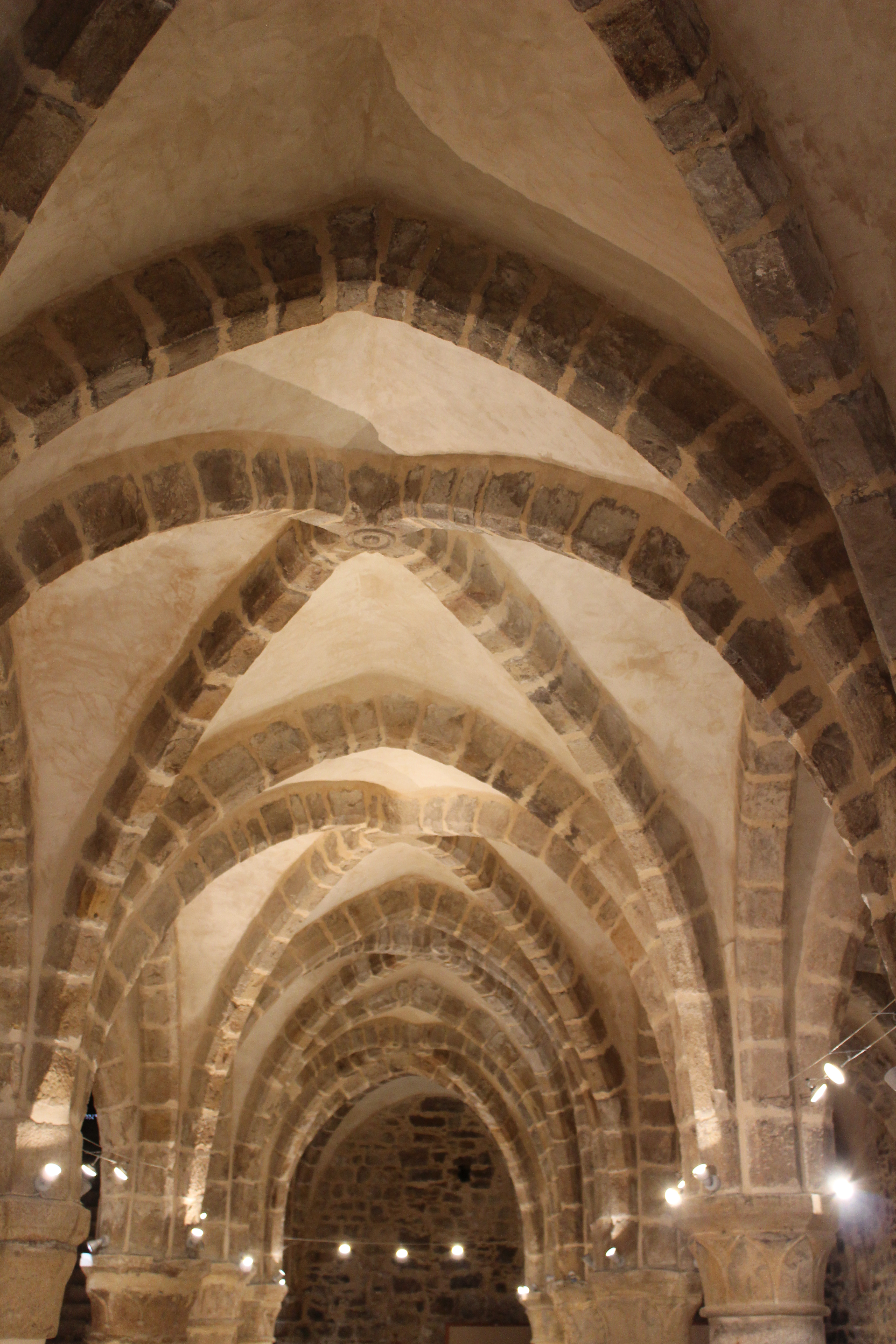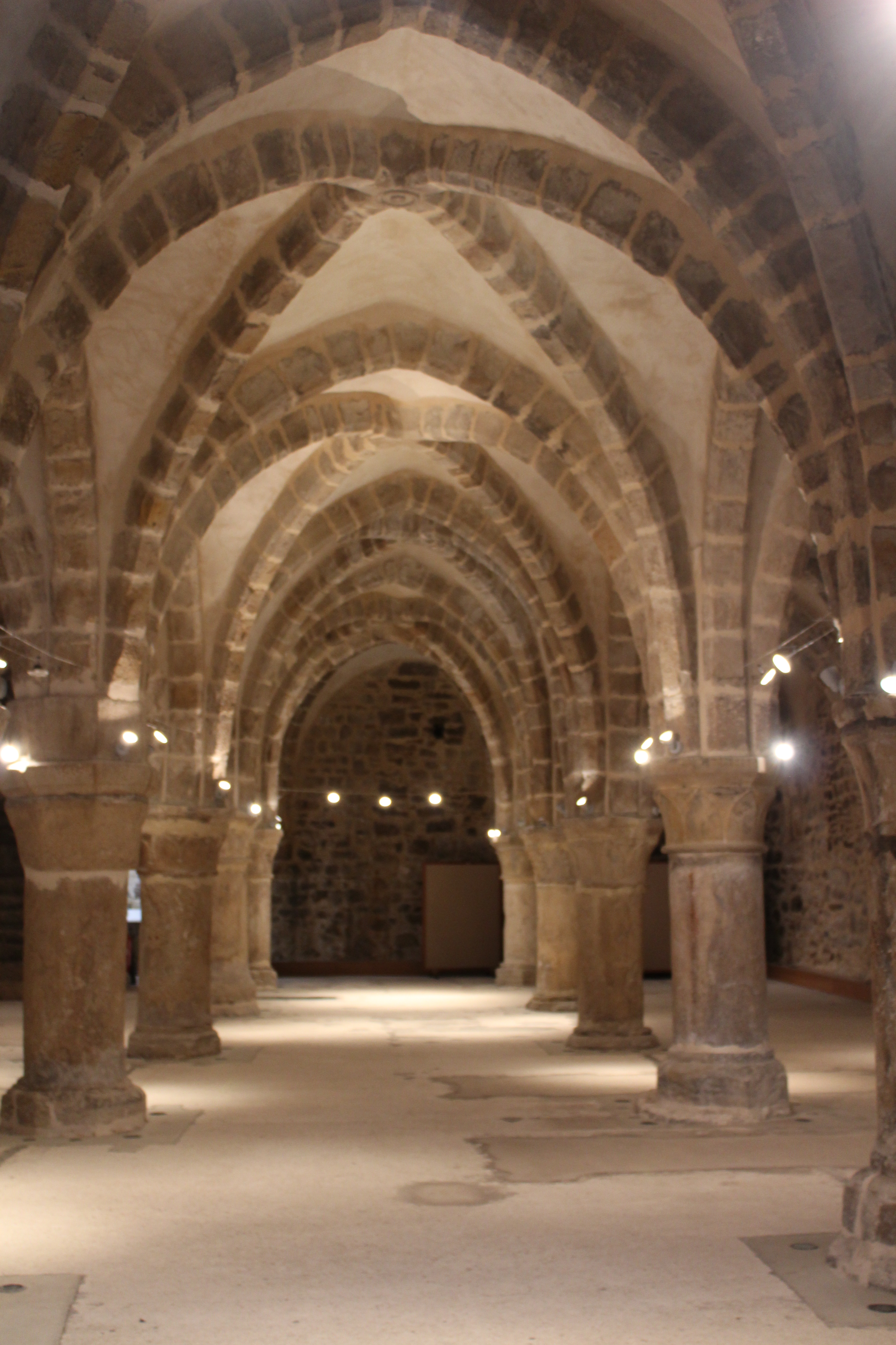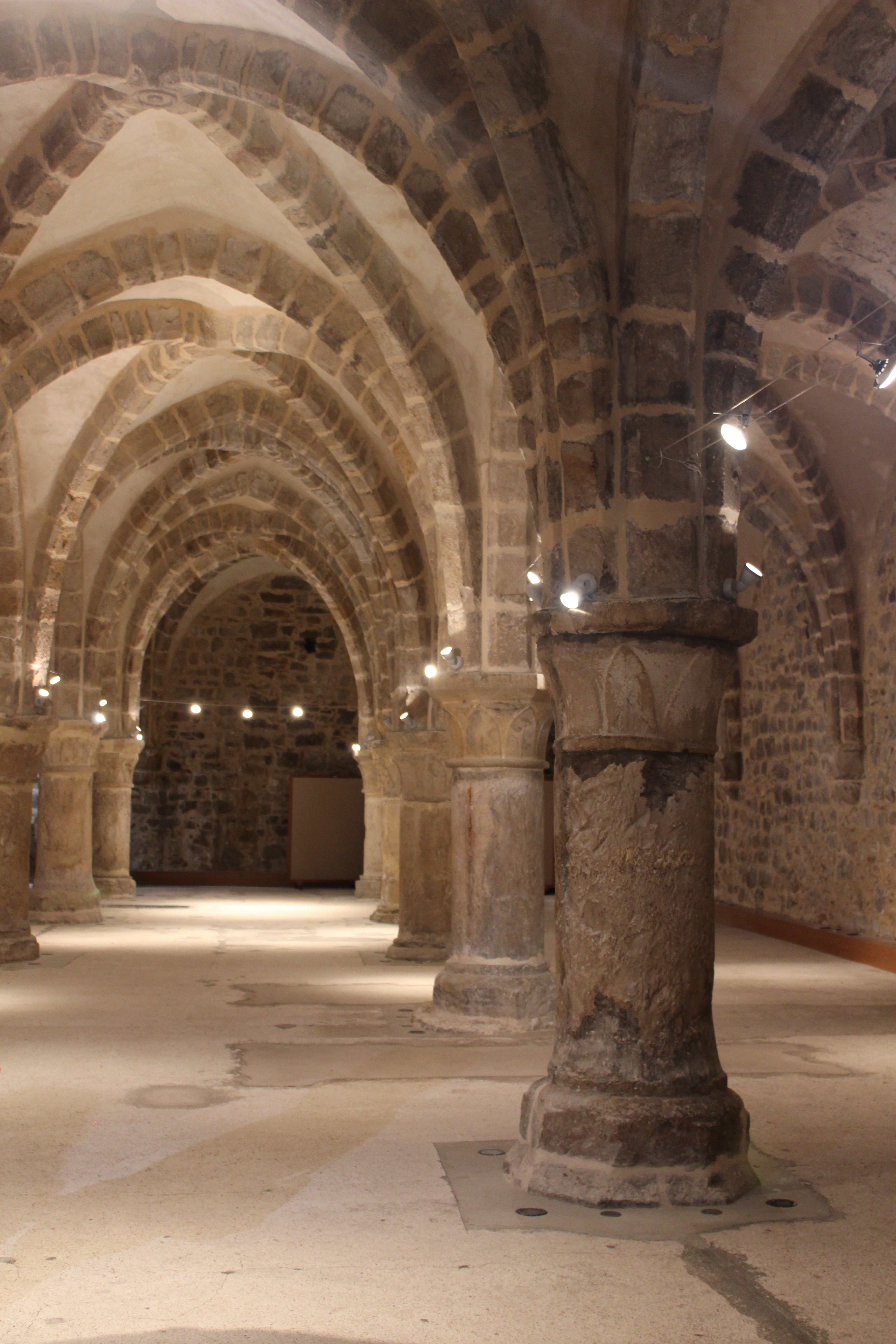 Le bâtiment est composé de trois nefs qui est supposé par deux rangées de six piliers. Pour les dimensions, la salle a une longueur de 33m, une largeur de 13,20m et les clés de voûtes dominent à 4,95m du sol. Les piliers portent des chapiteaux octogonaux dont quelques-uns sont sculptés de feuilles.