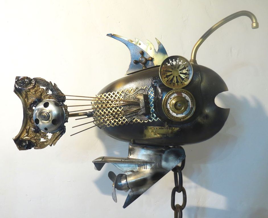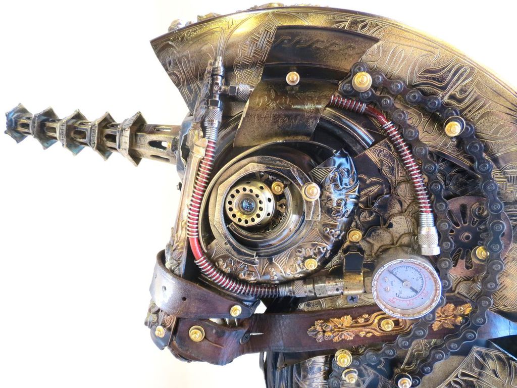 Son univers du steampunk ne vous parle peut-être pas, mais il découvre tout ça vers l’âge de 15 ans dans des fêtes médiévales où son père expose, « des gens en costume qui reprennent l’univers Victorien, dans un futur tel qu’on l’imaginait à l’époque tournant autour de la machine à vapeur principalement. Grâce à l’utilisation de matériaux comme le cuivre, le laiton ou les mécanismes d’horloges et c’est avec des techniques de soudure et de polissage qu’il donne à ces pièces l’illusion qu’elles viennent d’un autre siècle. Permettant l’assemblage et la création de pièces uniques, tantôt imposantes, tantôt très minutieuses.