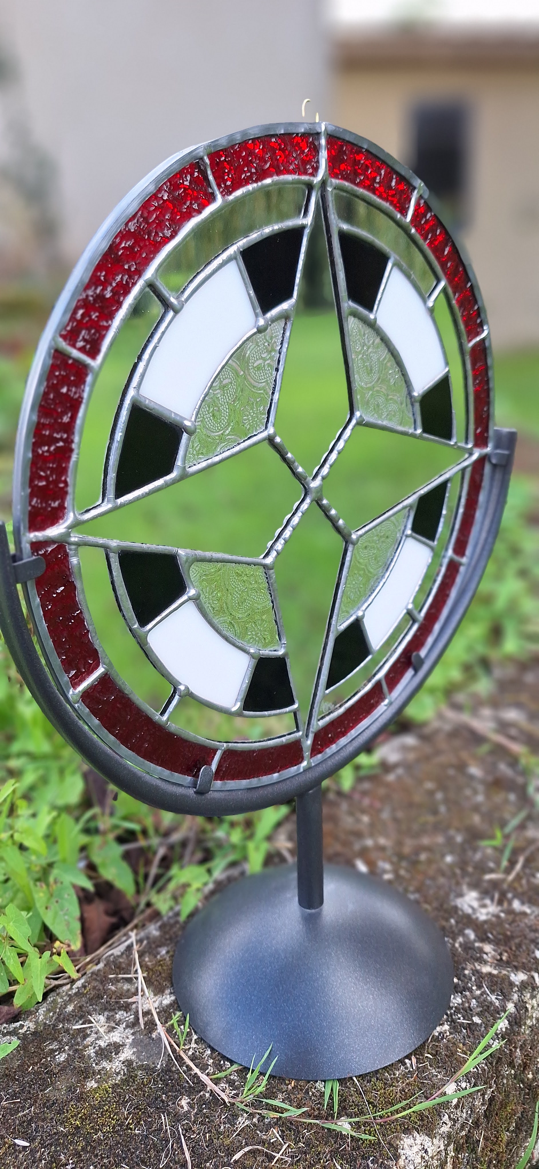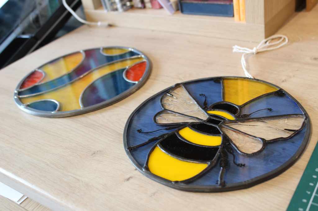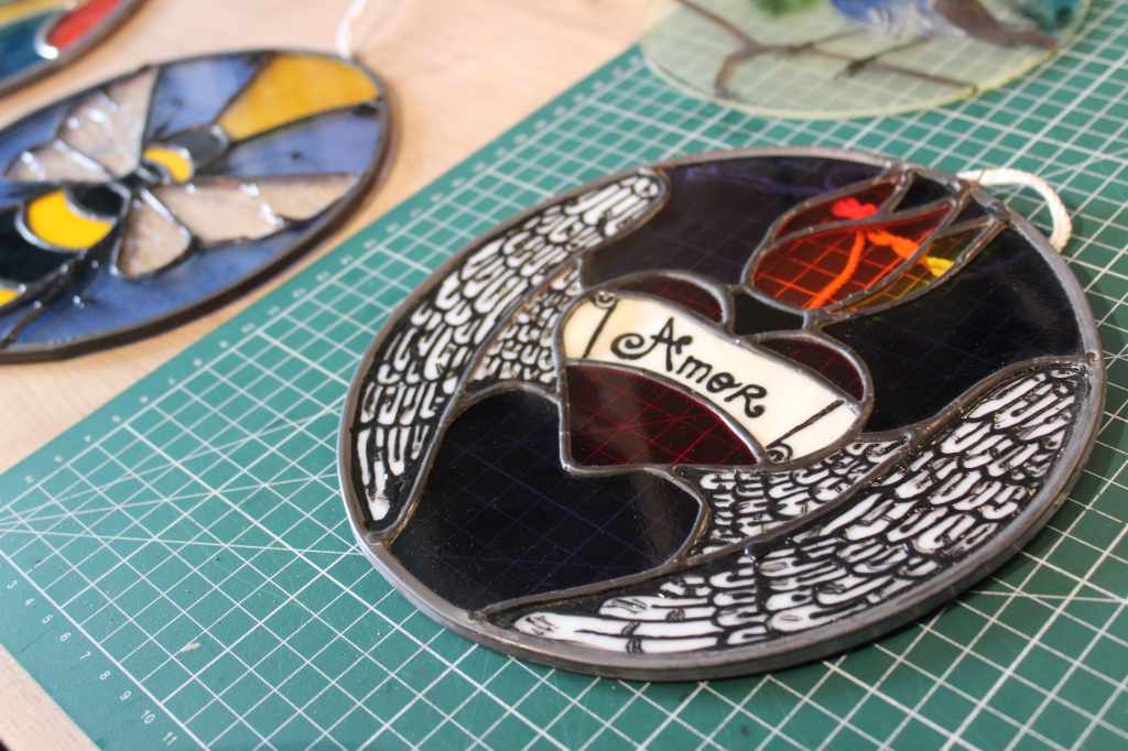 A l’origine le vitrail c’est un assemblage de morceaux de verre, personnellement j’ai appris la technique dite « au plomb », il existe aussi la technique Tiffanny qui consiste à entourer chaque verre d’une bande de cuivre puis celle du fusing désigne une technique de fusion de morceaux de verre préalablement disposés sur une base, par cuisson contrôlée dans un four aux environs de 800°-850° et pour finir celle de la grisaille. Personnellement, ma technique de prédilection est celle du Tiffany !