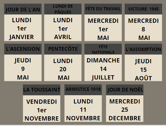 Si l’on regarde dans le calendrier, les jours fériés sont: