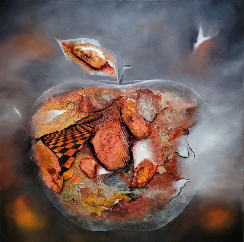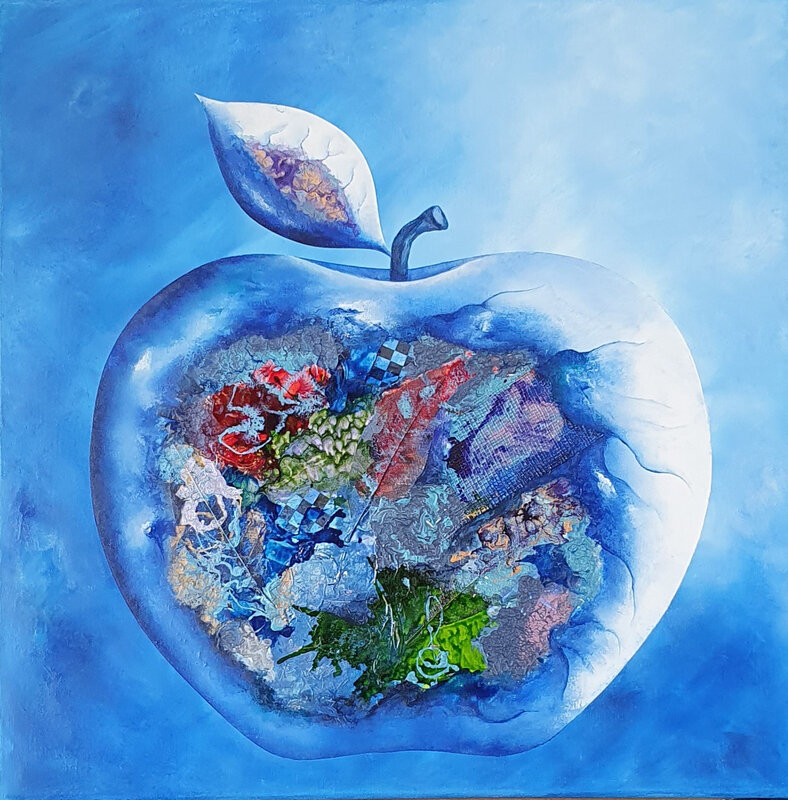 L’intérieur de la pomme : inspirée par une visite au Musée Magritte où elle découvre une pomme enfermée dans une vitrine, Martine décide de lui donner vie. Elle explore ce fruit comme une représentation du monde, jouant avec les lumières, les matières et les contrastes pour en révéler la richesse intérieure. « La pomme représente pour moi comme l’ouverture vers un autre monde dans lequel on peut s’évader »