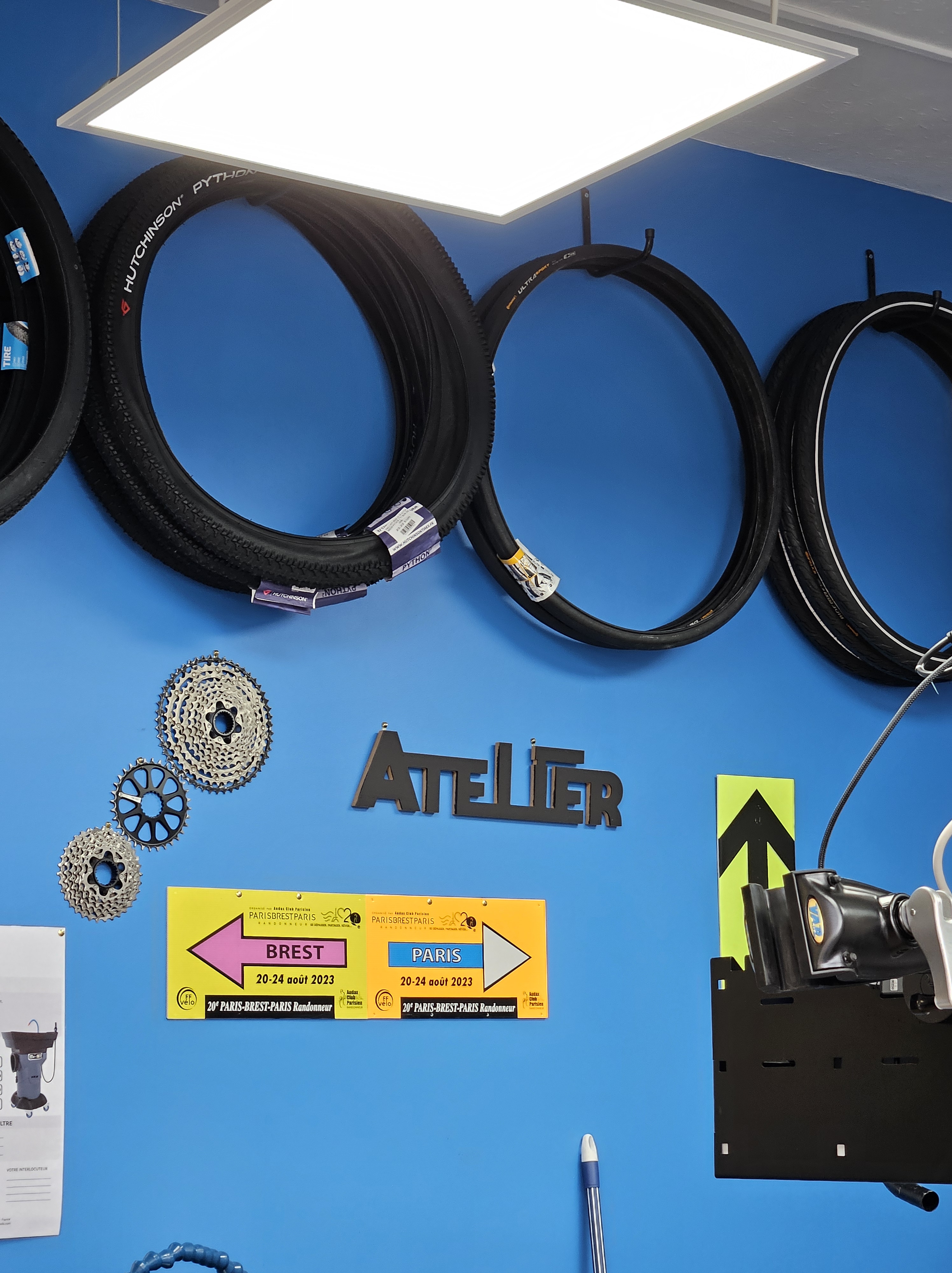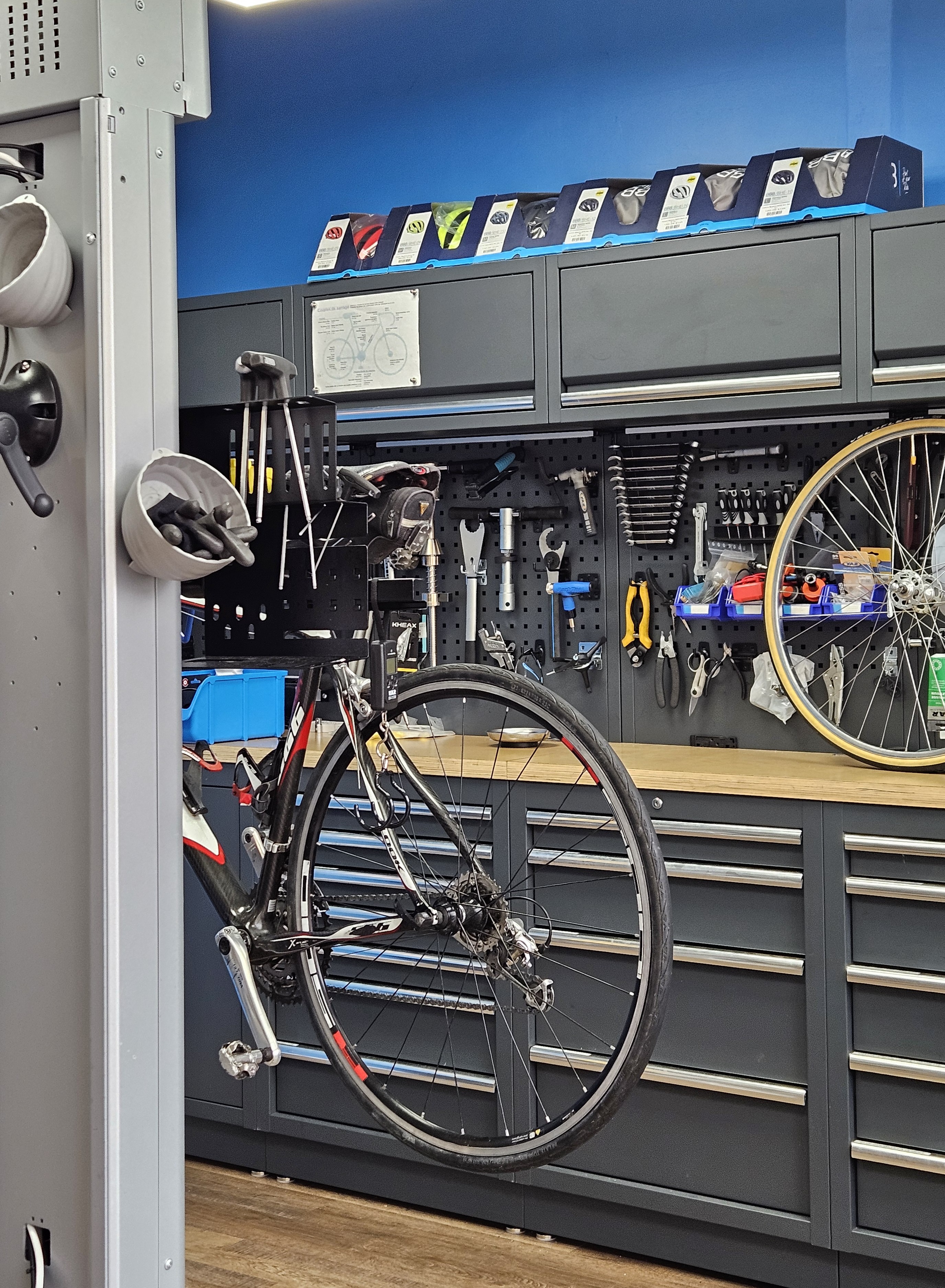 - Réparation de tous types de vélos (VTT, route, électriques, cargo…)